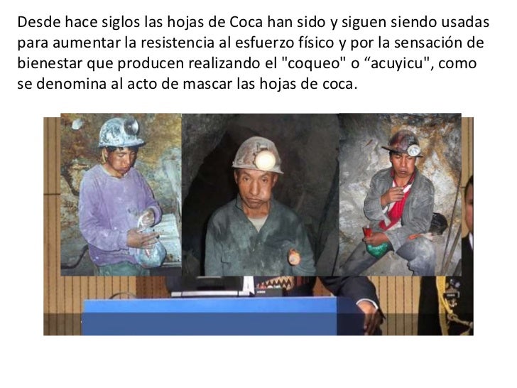 - 12. Desde hace siglos las hojas de Coca han sido y siguen siendo usadaspara aumentar la resistencia al esfuerzo físico y por la sensación debienestar que producen realizando el "coqueo" o “acuyicu", comose denomina al acto de mascar las hojas de coca.
