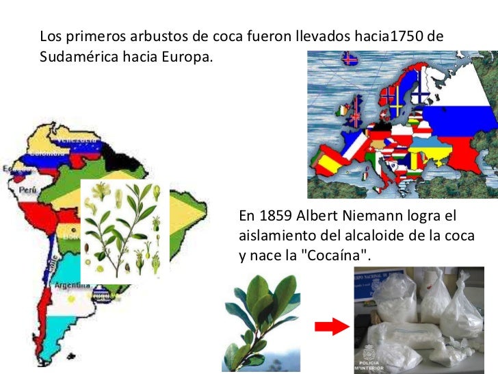 - 13. Los primeros arbustos de coca fueron llevados hacia1750 deSudamérica hacia Europa. En 1859 Albert Niemann logra el aislamiento del alcaloide de la coca y nace la "Cocaína".